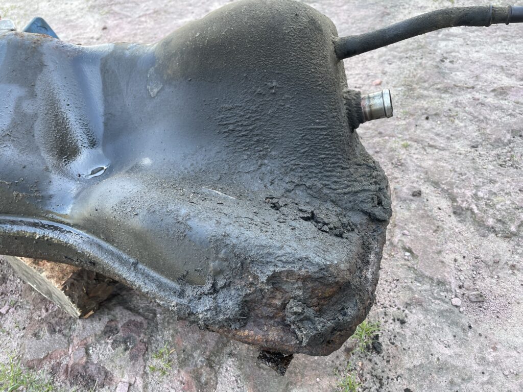 Po kilku tygodniach udało mi się znaleźć firmę specjalizującą się w rozbiórce JGC WK/WH 🙂 Mieli dla mnie zbiornik za nawet jak się później okazało dobre pieniądze 🙂 Poniżej kilka fotek z wyjętego zbiornika 🙁